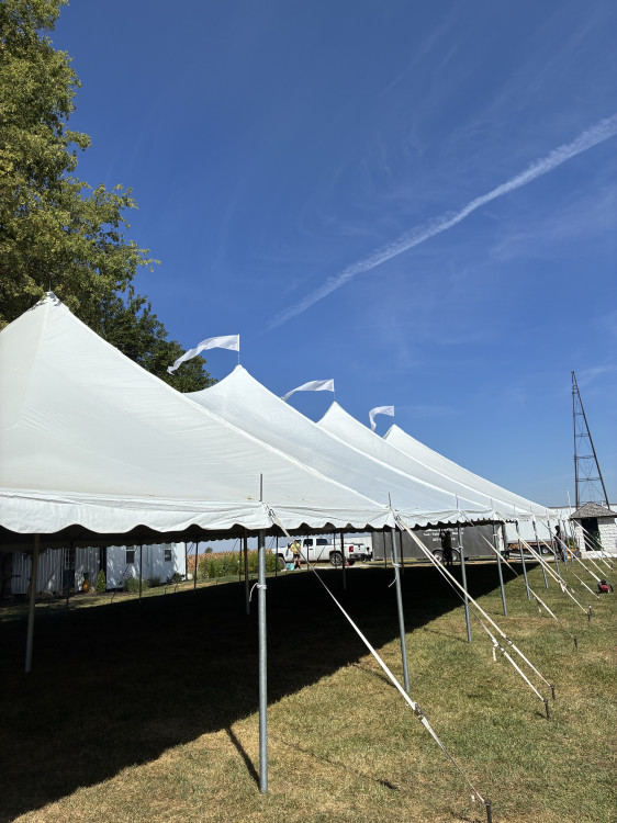 This is the perfect size tent for events for 300 People seated! Call for more info on sizing! (flags optional)